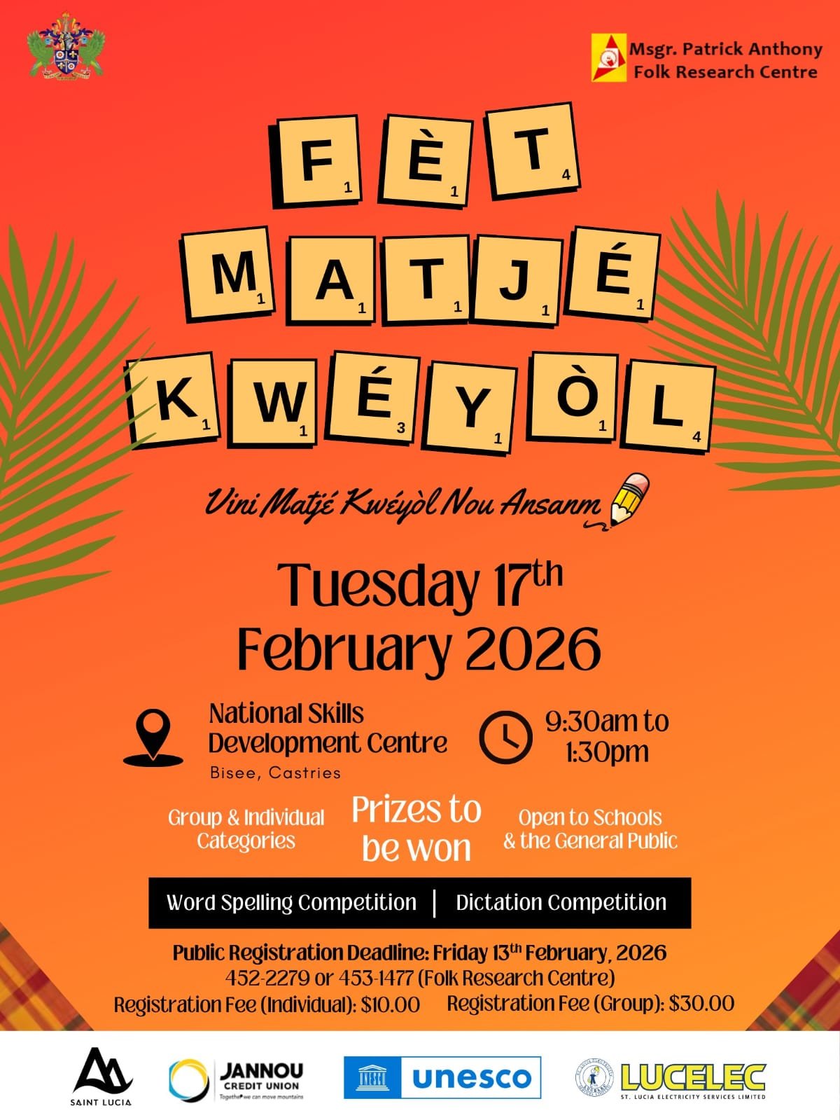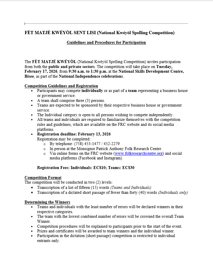 Get ready for the ultimate celebration of our rich Creole heritage at the Fèt Matjé Kwéyòl – a vibrant spelling and dictation competition that brings our language to life!